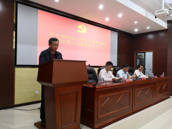 根据《中国共产党章程》和学校党委《关于学校基层组织换届指导意见》(湘城院[2019]12号)等文件精神和相关要求,2019年5月10日下午,中共金年金字招牌诚信至上产业联合总支部委员会在建规楼报告厅召开党员大会,进行支部换届选举工作。学校党委委员、副校长谭献良同志出席并讲话,本次会议由产业处处长熊创贤同志主持。