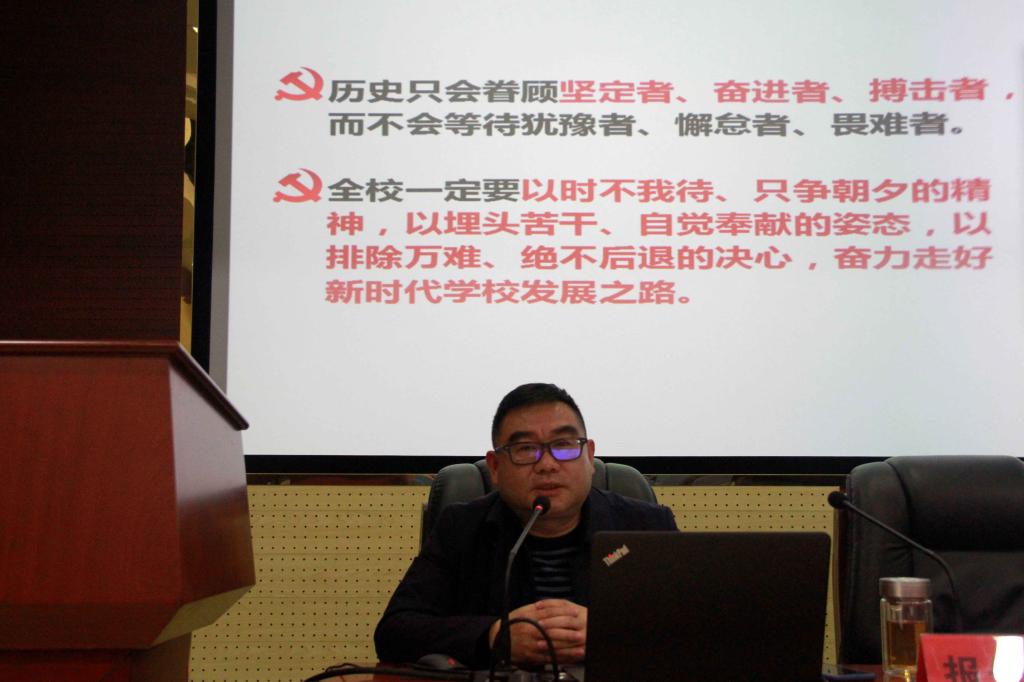郑卫民最后讲到,对标新目标我们的事业仍任重而道远,他引用习近平总书记讲话历史只眷顾坚定者、奋进者、搏击者,而不会等待犹豫者、懈怠者、畏难者,号召广大党员干部紧密团结在以习近平为核心的党中央周围,以习近平新时代中国特色社会主义思想为指导,以时不待我、只争朝夕的精神,埋头苦干、自觉奉献的姿态,以排除万难、决不后退的决心奋力走好新时代学校和产业发展之路;努力谱写新时代学校发展、校办产业发展新篇章。