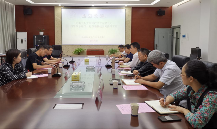 2019年9月18日下午3点半,湖南工业大学资产经营公司总经理向华政一行来金年金官网考察交流,我处处长熊创贤、副处长郭太平、资产公司财务总监刘翔等企业负责人陪同。