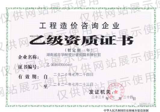7月24日,经湖南省住房和城乡建设厅审批,金年金字招牌诚信至上设计院顺利获得工程造价咨询乙级资质,这是设计院继取得“六甲(城乡规划、建筑工程、市政道路、风景园林、资信评价和科技咨询)五乙(市政给水工程、排水工程、桥梁工程、岩土工程勘察和测绘)一丙(旅游规划设计)、2个省级科研平台(湖南省博士后科研流动站协作研发中心、湖南省城乡生态规划与修复工程技术研究中心)、2个地方研究中心(益阳市人民政府城乡规划研究中心、南县乡村振兴学院)、湖南省政府投资项目代建单位、湖南省农村土地承包经营权确权单位”之后,又一个重大资质建设成果,标志着设计院业务经营范围和综合竞争力得到进一步大幅提升,为今后实现全方位发展和全过程咨询进一步奠定坚实基础。