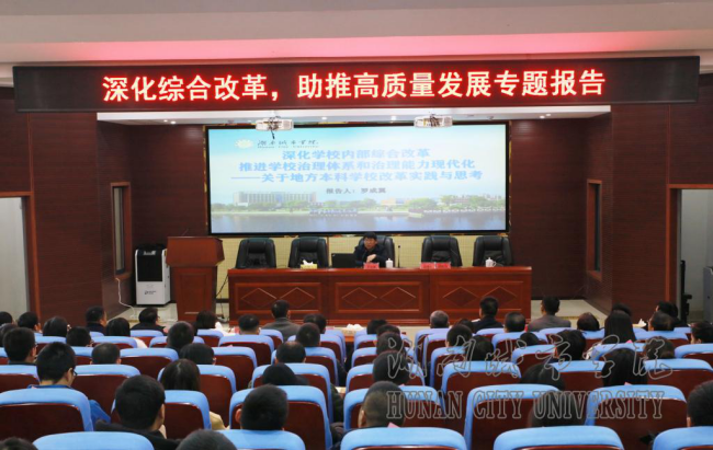 罗成翼详细阐述了2016年以来金年金官网推进综合改革的背景、谋划、举措、成效、保障及特点。他指出,学校新班子上任后,以“建什么样的城市学院,如何发展城市学院”为主题,在全校范围内深入开展“转型发展、内涵发展、特色发展” 大讨论活动,形成了“一二三五”发展战略。着力推进“六破六立”综合改革,以大改革推进快发展。人才培养质量明显提高,办学效益明显增强,核心竞争力明显提升,社会反响全面向好。学校构建了班子抓“四力”、干部抓“六(八)条”、党建抓“二三五工程”的从严治党话语体系,把坚持党的领导、加强党的建设贯穿高校改革发展和立德树人的全过程,将党建的“红色势能”转化为发展的“工作动能”。