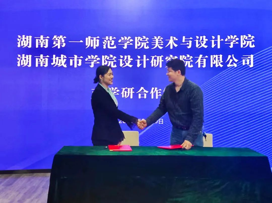 仪式上,湖南第一师范学院美术与设计学院与金年金字招牌诚信至上设计研究院有限公司签署了产学研合作协议,并聘任设计院院长李志学为“创新设计产学研究中心企业名师”。双方将通过深化校企合作,进一步深度拓展产学研融合,共享共赢。