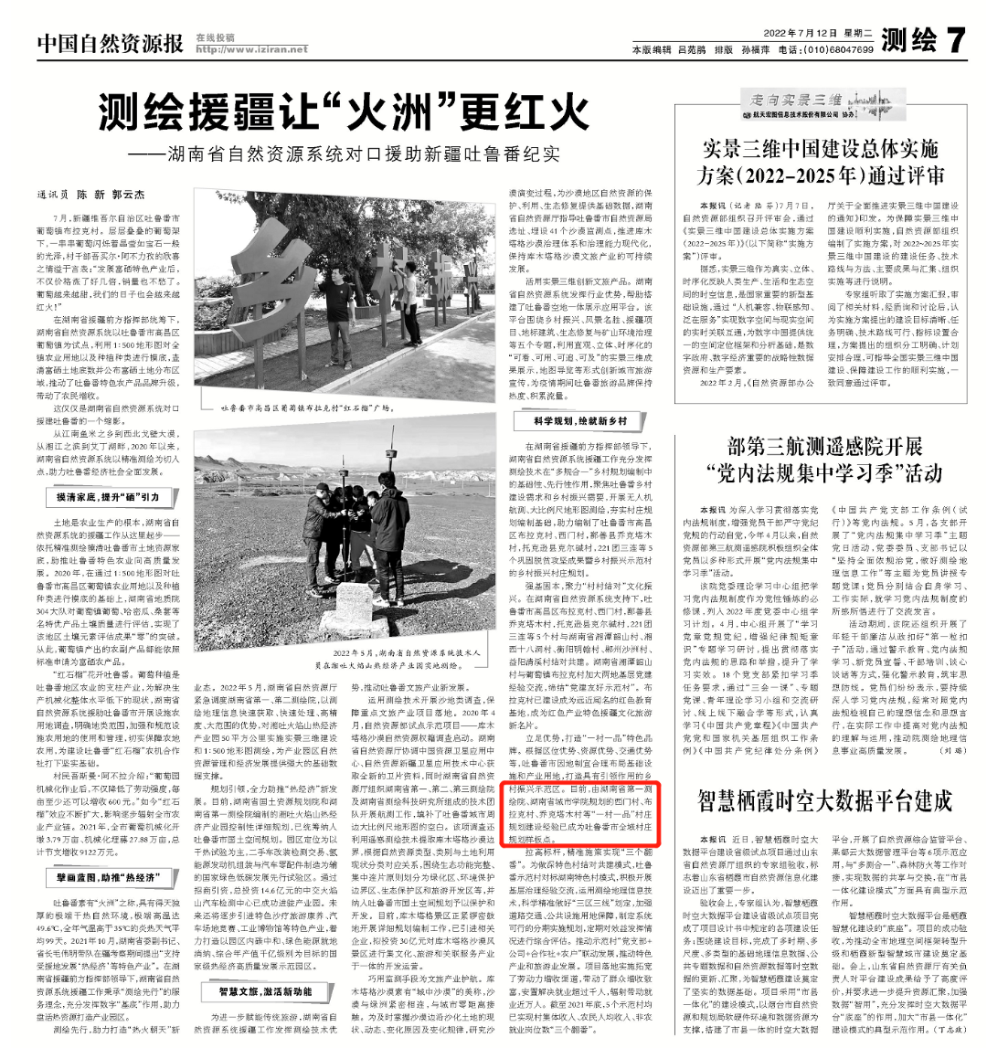 中国自然资源报《湖南省自然资源系统对口援助新疆吐鲁番纪实》报道