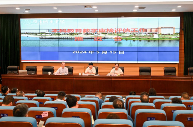 本网讯(通讯员 周术明)5月15日,学校在图书馆报告厅召开职能部门本科教育教学审核评估工作汇报会暨审核评估工作推进会。校党委书记汤放华、校长何振等在家的校领导出席会议。