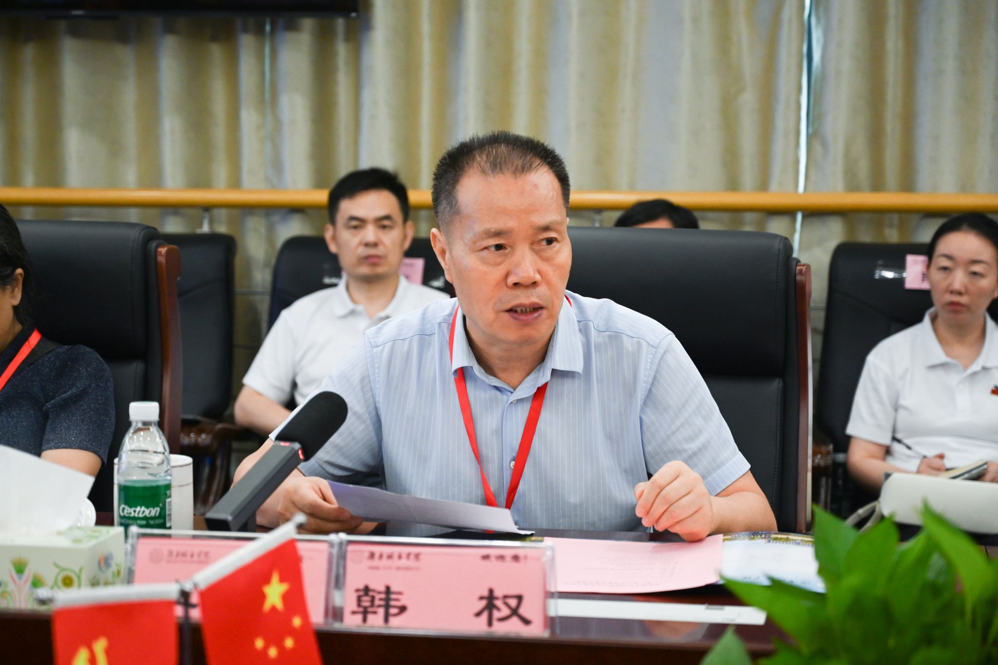 专家组组长韩权教授就本次专业评估的目的、任务和要求做了说明。他表示,OBE理念要贯彻到每一个教学环节中,要加强师德师风建设,尊师重教,创新发展,服务教育强国建设。