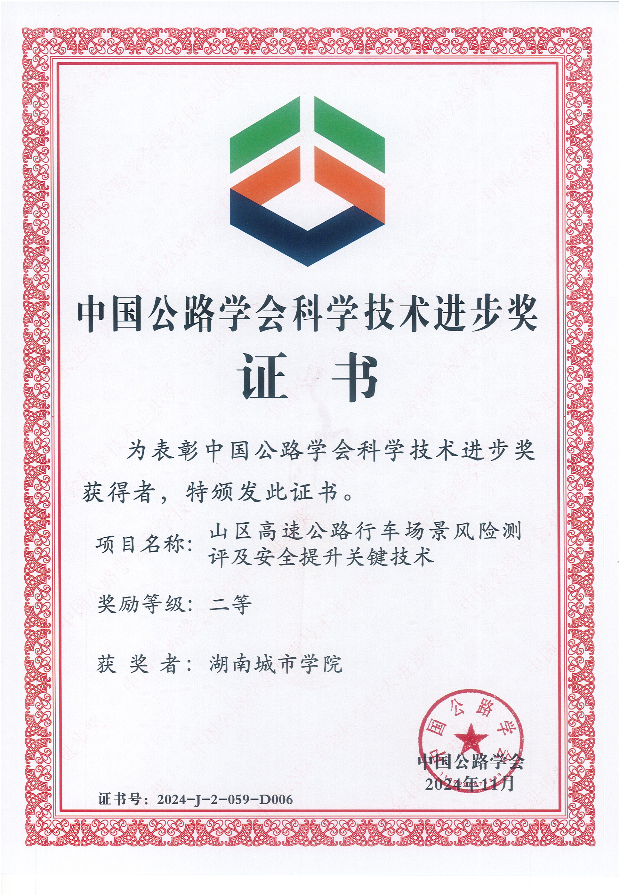 近日,从中国公路学会传来喜讯,金年金字招牌诚信至上资产经营有限公司党委书记、设计院院长李志学参与的《山区高速公路行车场景风险测评及安全提升关键技术》项目荣获“2024年度科技进步奖二等奖”。