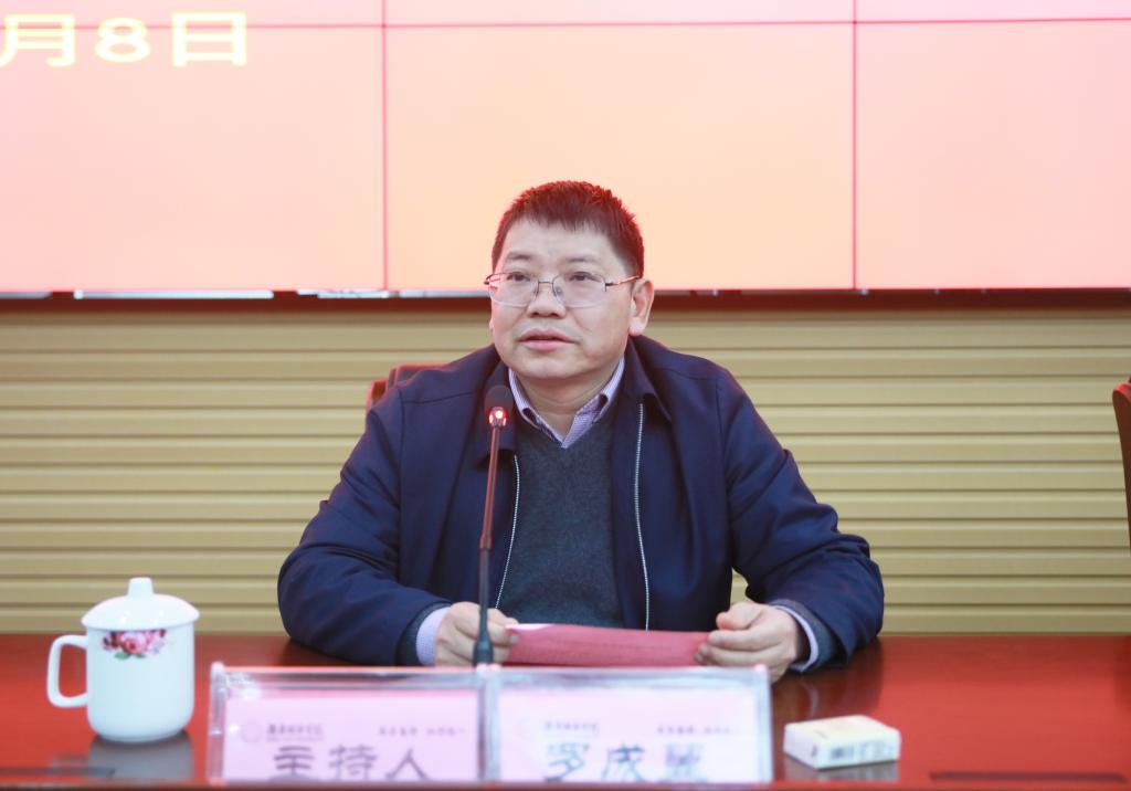 党委书记罗成翼主持报告会。