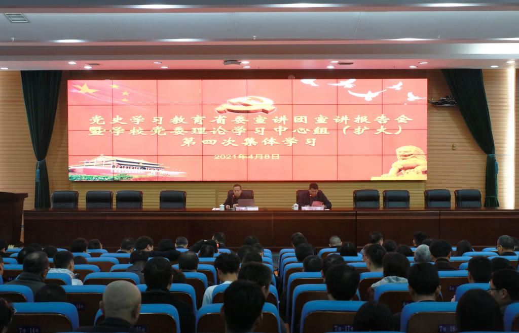 (转自学校官网)2021年4月8日下午,党史学习教育省委宣讲团宣讲报告会暨金年金字招牌诚信至上党委理论学习中心组(扩大)第四次集体学习在图书馆报告厅举行,省委宣讲团成员、省委宣传部部务会成员、二级巡视员刘新年为大家作了一场精彩的宣讲报告。党委书记罗成翼主持报告会,学校全体校领导、副处以上干部、学生辅导员、党支部书记以及学生代表三百余人聆听了报告。