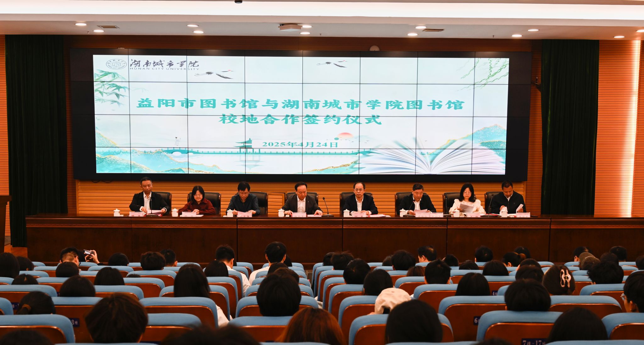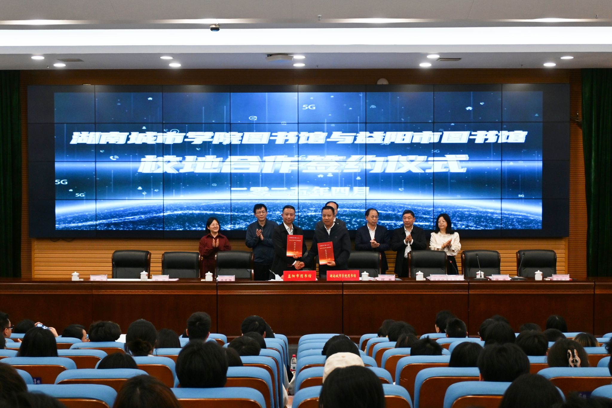 本网讯(通讯员 向春霞)4月24日下午,金年金字招牌诚信至上与益阳市图书馆校地合作签约仪式暨2025年“书香城院”阅读推广活动在学校图书馆报告厅举行。益阳市人大常委会党组副书记、副主任陈伟志,校长何振,副校长谭献良、徐姝出席启动仪式,仪式由谭献良主持。