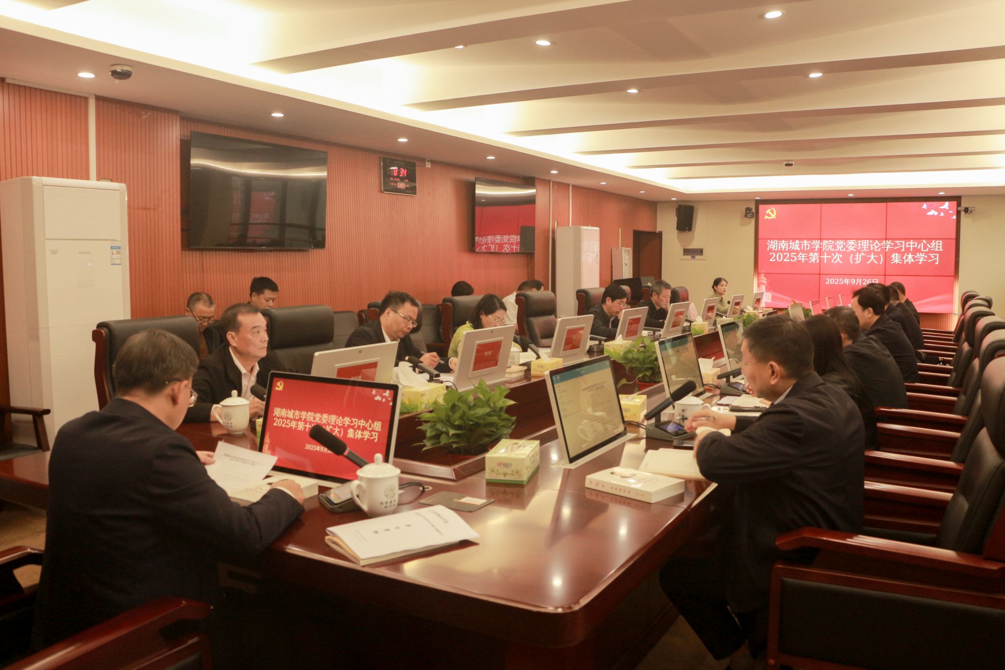 本网讯(通讯员 蔡润晨)9月26日,学校在办公楼一会议室举行党委理论学习中心组2025年第十次(扩大)集体学习。党委书记何振主持会议,党委理论学习中心组全体成员和各二级党组织书记参加了会议。