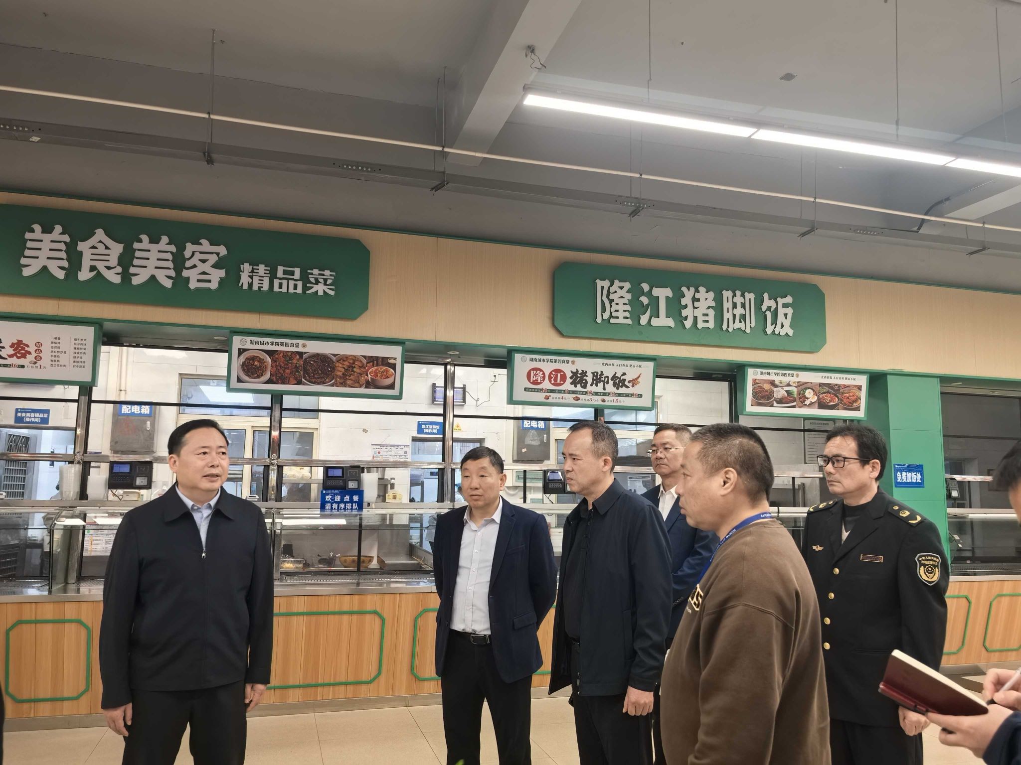 本网讯(通讯员 祝新)10月20日下午,益阳市委副书记、市长熊炜来金年金官网督导食品安全工作。益阳市政府秘书长梁成立,市场监管局、市政府督查室负责人等陪同督导,副校长谭献良,党委委员、组织部部长吕贤军以及后勤管理处相关人员参加。