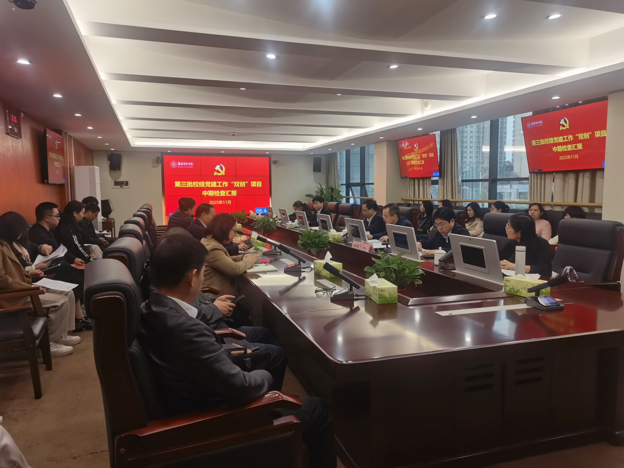 本网讯(通讯员 陈艳姣11月4日上午,学校在办公楼一会议室召开第三批校级党建“双创”培育创建单位中期检查汇报会。党委副书记袁志成,党委委员、组织部部长吕贤军出席会议。