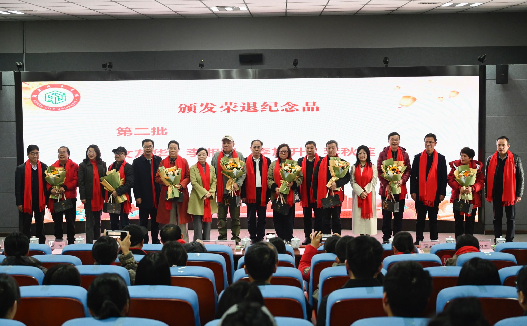 本网讯(通讯员 王丽妮)1月16日下午,学校2025年教师荣退暨新进教师入职仪式在建规楼432报告厅举行。全体校领导,各二级学院党委书记、相关部门负责人以及2025年荣退教师及新进教师代表齐聚一堂,共同见证了这一温馨时刻。仪式由校长陈瑜主持。