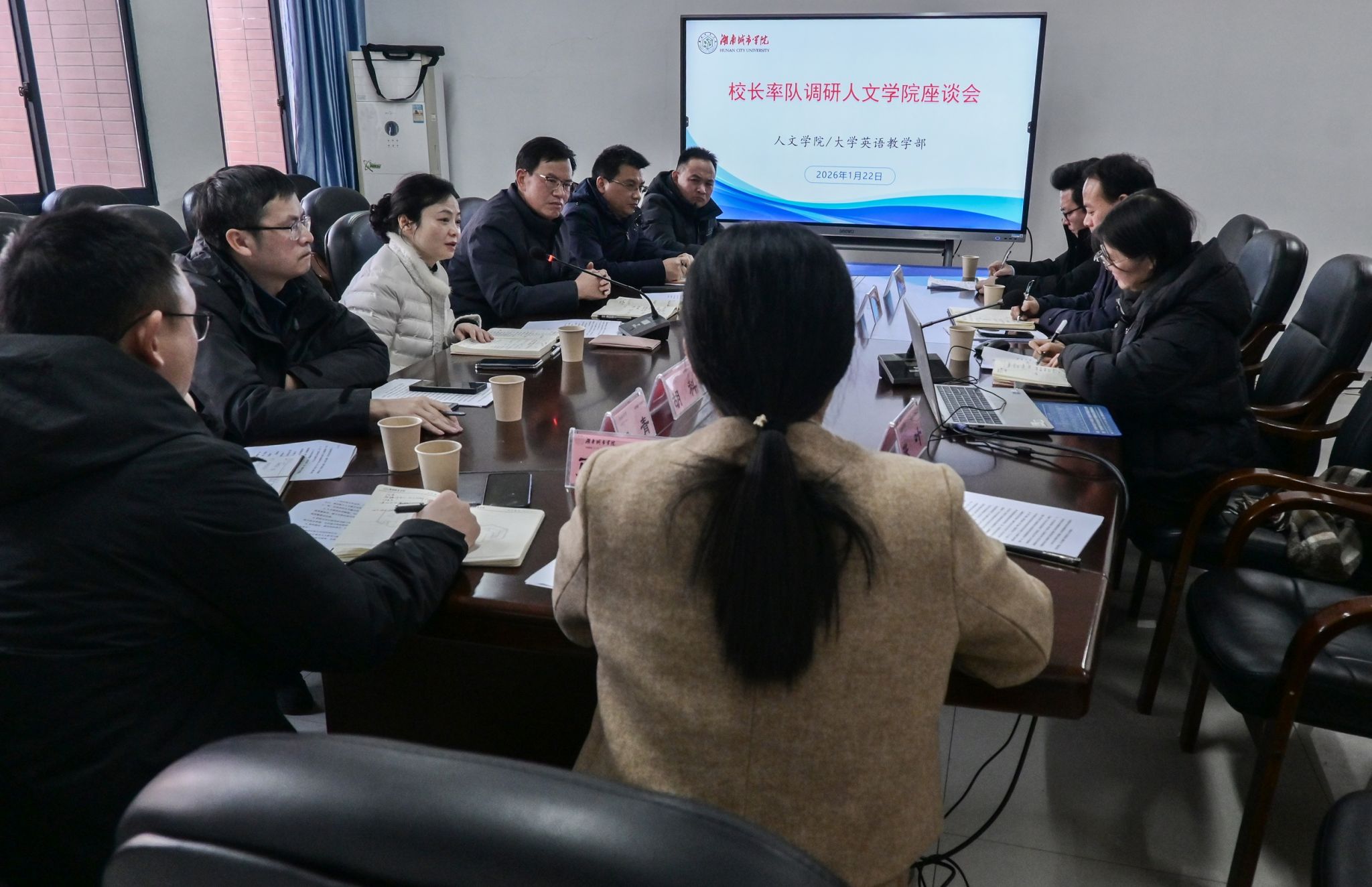 人事处、教务处、科研处、学科建设与发展规划处等职能部门主要负责人陪同调研。
