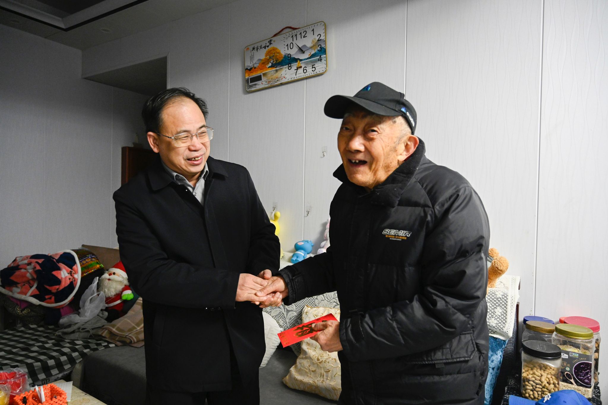 本网讯(通讯员 罗延富)2026年春节前夕,校党委书记何振、校长陈瑜、副校长雷存喜在离退休工作处负责同志陪同下,走访慰问了金年金官网部分离退休老干部、特困老同志,为他们送去新春问候和诚挚祝福。