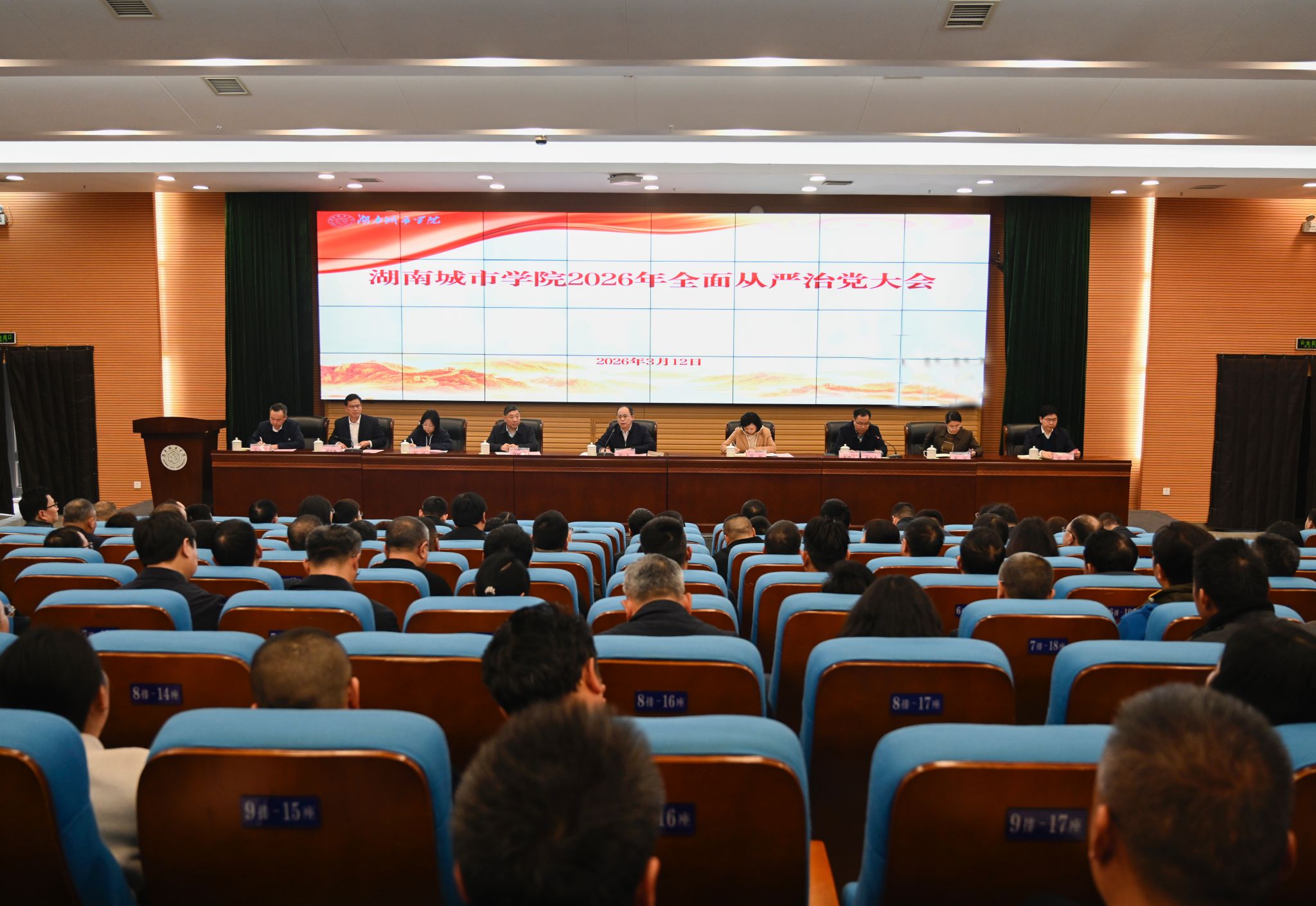 本网讯(通讯员 盛洁)3月12日,学校在图书馆报告厅召开2026年全面从严治党大会,深入学习贯彻习近平总书记关于党的自我革命的重要思想,总结2025年学校纪检监察工作,部署安排今年重点任务。全体校领导出席会议,校党委副书记袁志成主持会议。