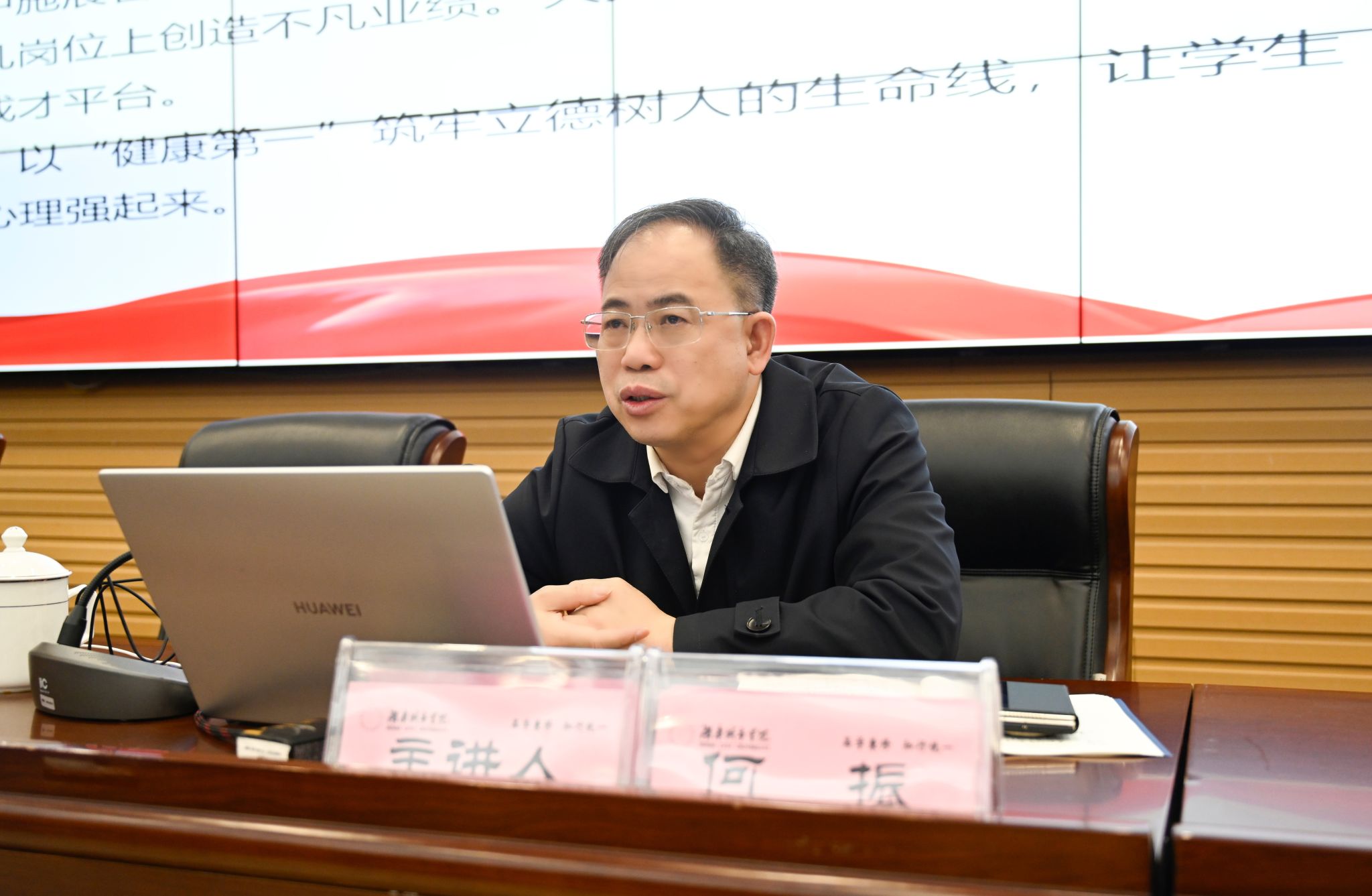 何振以“答好政绩观‘三问’,书写学校高质量发展新篇章”为题作专题辅导报告。报告紧紧围绕“坚守初心,答好‘政绩为谁而树’的民心之问”“久久为功,答好‘树什么样的政绩’的发展之问”“求真务实,答好‘靠什么树政绩’的实干之问”三个根本问题,系统阐述了正确政绩观的时代内涵与实践要求。