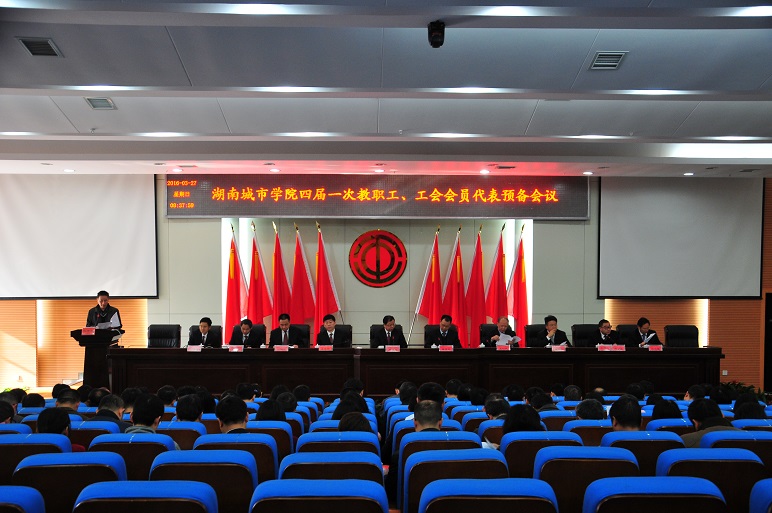 (本网讯)3月27日上午8点30分,金年金官网第四届一次教职工、工会会员代表大会预备会议在图书馆报告厅召开。四届一次双代会正式代表、列席代表和特邀代表出席会议。副校长、工会主席郑卫民主持预备会议。