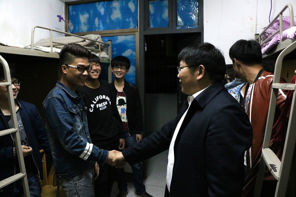 罗成翼对学生生活环境非常关注,他走访了12、17、18等3栋学生公寓,与同学们进行了零距离交流。在12栋,他详细地了解了同学们在生活费用、伙食质量、热水供应等方面地具体情况;在17栋,他询问了同学们在学习、生活中遇到的困难,要求随行的相关部门给予解决;在18栋,他对高层电梯公寓的基本情况进行了了解。他还与2015级的同学分享了自己的学习经验:“在大学里,学习是最重要的,要有正确的学习态度和科学的学习方法。同学们要掌握每个年级的学习侧重点,大一时,要特别注重基础;在努力学习的同时也要学会劳逸结合,锻炼好身体,做到身心协调发展。”