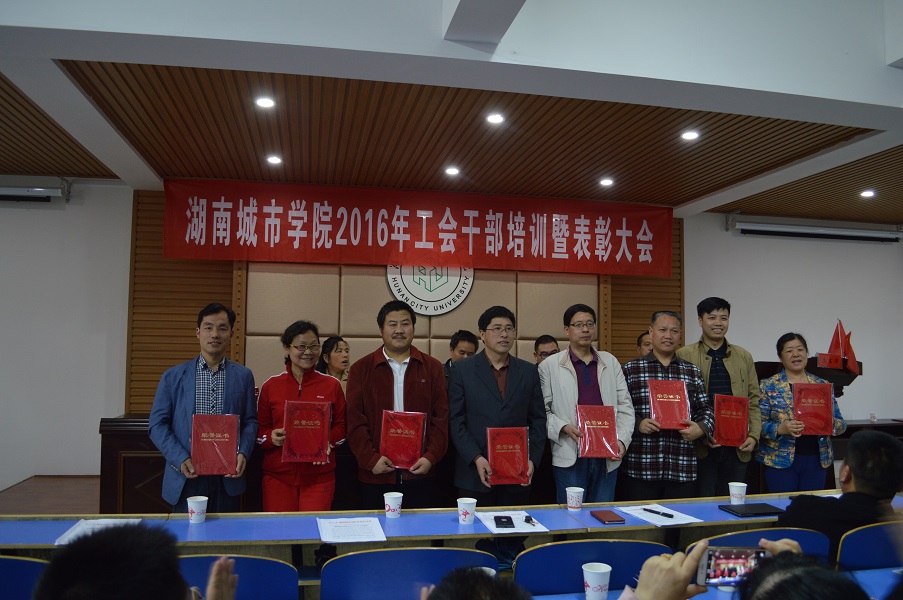 (本网讯)4月26日,学校工会在二办公楼310室召开2016年工会干部培训暨表彰大会,工会三个委员会委员、专干、分工会主席及委员、各协会正副会长参加会议。会议由副校长、工会主席郑卫民主持,党委书记罗成翼出席会议并作讲话。