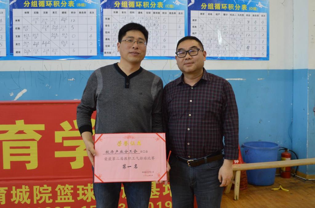 (本网讯)5月10日,由校工会主办、体育学院协办的金年金官网第二届教职工气排球比赛落下帷幕。全校22个分工会经过分组循环预赛、交叉淘汰决赛共63场的激烈角逐,最终,体育学院分工会获得特等奖,校办产业分工会获得第一名,美术与艺术设计学院分工会、化学与环境工程学院分工会、土木工程学院分工会等单位分获2-8名。副校长、工会主席郑卫民观看了决赛并为获奖分工会颁奖。
