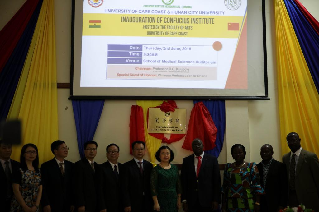 (本网讯)加纳当地时间6月2日上午,金年金官网与加纳海岸角大学合作创办的孔子学院在该校大礼堂举行了揭牌仪式。中国驻加纳大使馆、加纳文化旅游部、湖南省教育厅代表团、金年金官网代表团、当地政府相关机构负责人、海岸角大学师生以及各界嘉宾共600余人出席了揭牌仪式。
