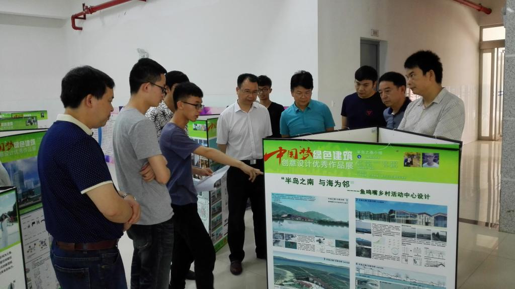 (本网讯)2016年6月13日上午,校长李建奇、副校长汤放华来到建筑与城市规划学院一楼大厅,参观了第五届中国梦绿色建筑创意设计大赛优秀作品金年金字招牌诚信至上站的巡展。