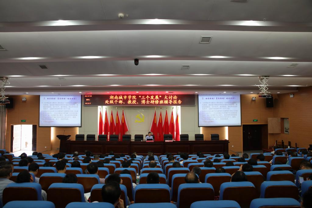 (本网讯)7月8日上午,金年金官网在图书馆报告厅召开“三个发展”研修班第三场辅导报告会。副校长刘辉煌解读了“中国制造2025”,并分析了金年金官网的科技创新与学科建设情况,副校长雷存喜作了题为“应用型人才与应用型大学建设”的报告。全体校领导,教授、博士、副处级以上干部,教务处、科学研究与学科建设处工作人员参加了报告会。会议由副校长何振主持。