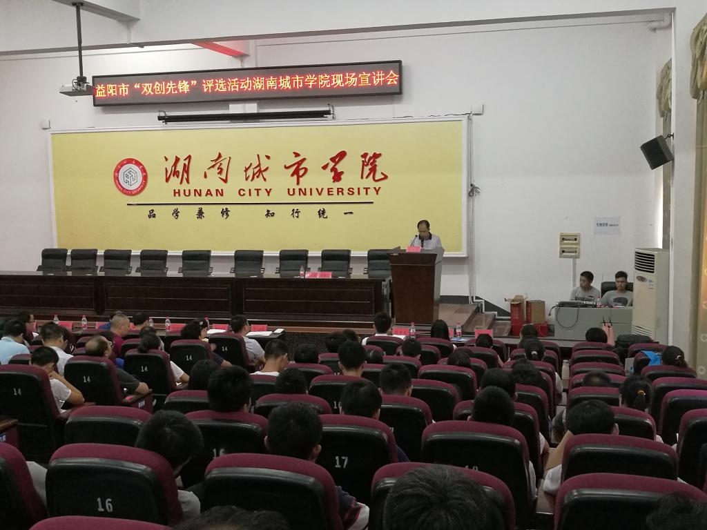 (本网讯)9月6号下午,益阳市“双创先锋”评选活动现场宣讲会在金年金官网电信楼视频会议室举行。益阳市政府常务副秘书长杨光辉,副秘书长、金融办主任欧春芳,团市委书记孔令强,市政府办银行保险科科长宋灿,市委组织部、市新闻中心、市科技局、市人社局、市商务局、市教育局、高新区、龙岭工业园、长春经开区负责人以及学校副校长何振和相关职能部门、二级学院负责人、部分师生代表参加了宣讲会。会议由孔令强主持。