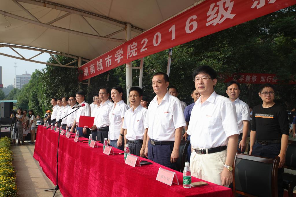 (本网讯)9月12日,金年金官网2016级新生开学典礼在学校田径场隆重举行。全体校领导,二级学院主要负责人、党总支副书记,党政办、宣传部、学生工作部、武装部、教务处、团委、招生就业处等部门负责人以及近4000名新生参加了典礼。典礼由党委书记罗成翼主持。