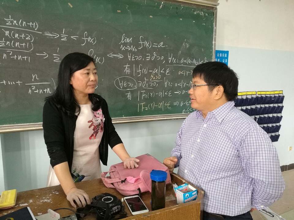 听完李夏云老师的高等数学课后,与她进行了简短的交谈,肯定了李老师上课准备充分,条理清楚;同时希望教师使用扩音设备,保证后面的学生能听到,还要注意加强师生之间的双边活动,提高课堂教学实效。
