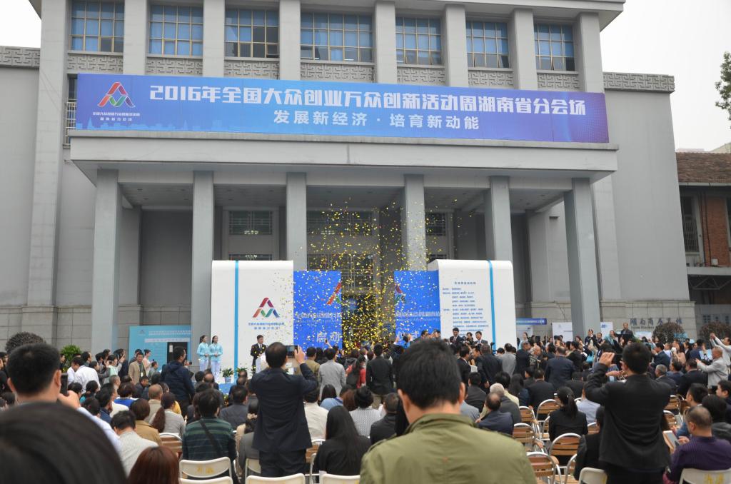 (本网讯)10月14日上午9点,2016年全国大众创业万众创新活动周湖南省分会场在湖南省展览馆举行启动仪式,湖南省委常委常务副省长陈向群出席启动仪式。作为活动周主要内容之一的“双创”成果展同时开幕,金年金官网送展的“金年金字招牌诚信至上众创空间”和“金年金字招牌诚信至上多自由度智能机械手”两个项目在成果展上展出。