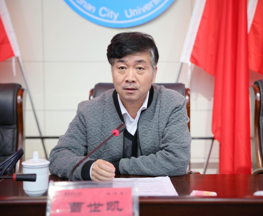 在报告会开始之前,曹世凯书记谈到了上午听取本校汇报及实地考察后的感受,他说,金年金字招牌诚信至上的办学特色鲜明,社会服务性强,培养了许多应用型人才,学校应立足办学定位,抓住创造“双一流”的机遇,争取早日获得硕士学位授予权。