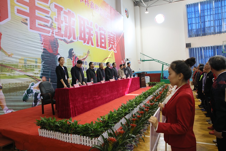 开幕式由省本科高校教职工羽毛球协会会长何学飞主持,金年金官网校长李建奇、省教育工会副主席王常华分别致辞,裁判员代表、运动员代表上台宣誓,省教育工会主席高新明宣布比赛开始。
