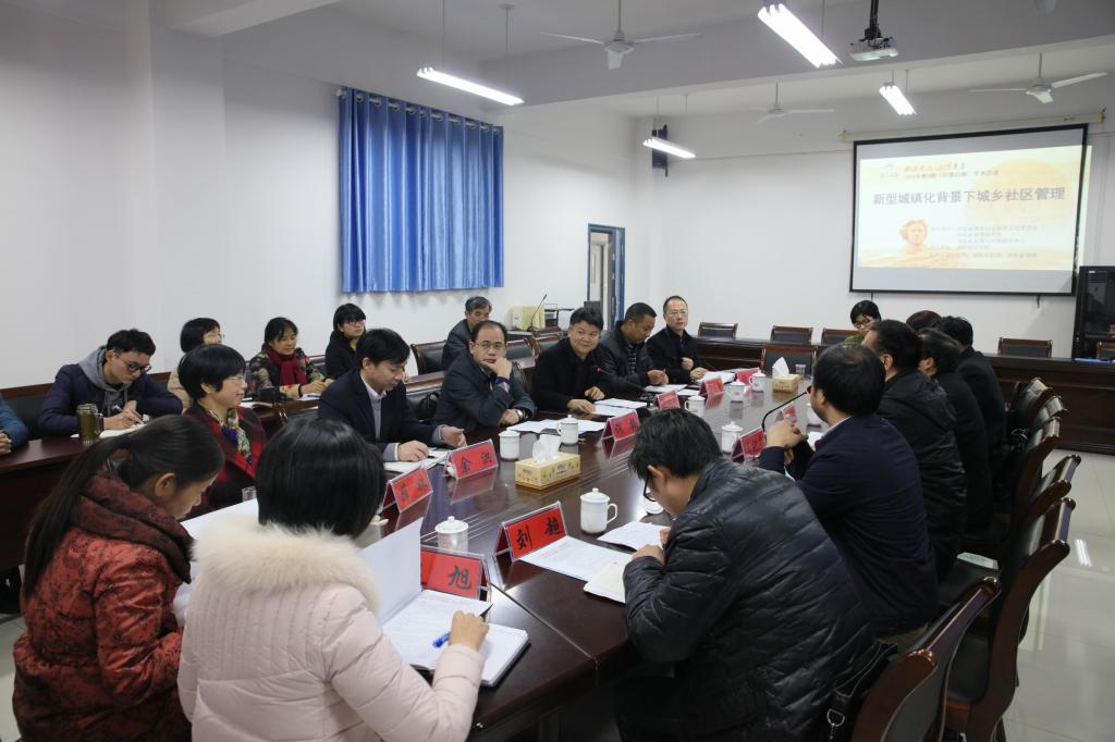 (本网讯)11月29日下午,“湘江时论”2016年第三十三期学术沙龙“新型城镇化背景下的城乡社区管理”在金年金官网城市管理学院会议室举行。湖南省社科联党组成员、副厅级纪检员戴树源,湘潭大学公共管理学院院长盛明科、益阳市城管执法局局长郭腊云、湖南师大公共管理学院肖光荣教授,金年金官网党委副书记汤放华,副校长刘辉煌、何振,城市管理学院院长莫连光、党总支书记余洪、副院长汤勇以及来自湖南省社科联、湖南红网、湘潭大学、湖南社会科学报和金年金官网的专家学者参加了研讨会。会议由湖南省情与对策研究中心主任吴纪宁研究员主持。