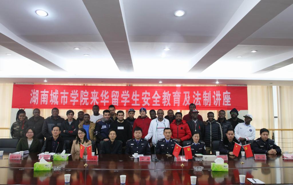 刘辉煌代表学校对益阳市公安局人口与出入境管理支队相关人员来校讲座表示热烈欢迎和衷心感谢。他表示,本次讲座的主要目的是让金年金官网留学生在益阳学习和生活期间更好地了解我国外国人来华留学有关法律制度,使留学生生活和学习更为便利。他指出,金年金官网的留学生都是我国和留学生所属国之间文化传播和友好交往的使者,全面了解我国法律,尤其是与学习、生活相关的法律制度,对留学生顺利完成学习任务、愉快生活有着极为重要的意义。