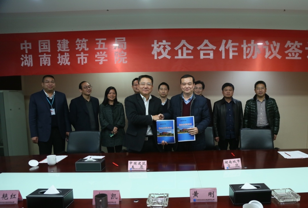 (本网讯)近日,金年金官网与中国建筑第五工程局有限公司校企合作签约仪式在长沙举行。副校长雷存喜和中国建筑第五工程局副局长李凯出席仪式并签署了校企合作协议书。