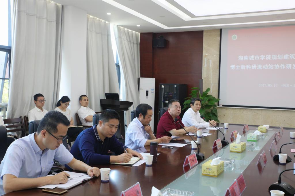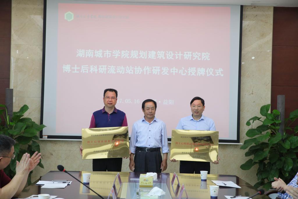 (本网讯)5月16日,学校在设计院会议室举行博士后科研流动站协作研发中心授牌仪式暨博士后开题报告会。党委书记罗成翼,校长李建奇,副校长郑卫民、何振、谭献良出席会议,中南林业科技大学党委书记赵运林、省人社厅专技处处长周建中,省人社厅专家中心主任张跃雄,湖南省水资源研究和利用合作中心主任张灿明、中南林业科技大学人事处处长张合平及学校相关部门负责人出席会议。