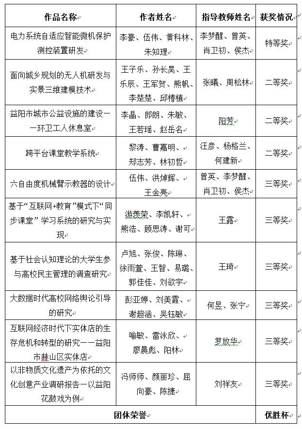 第十二届“挑战杯”湖南省大学生课外学术科技作品竞赛终审决赛金年金官网获奖清单