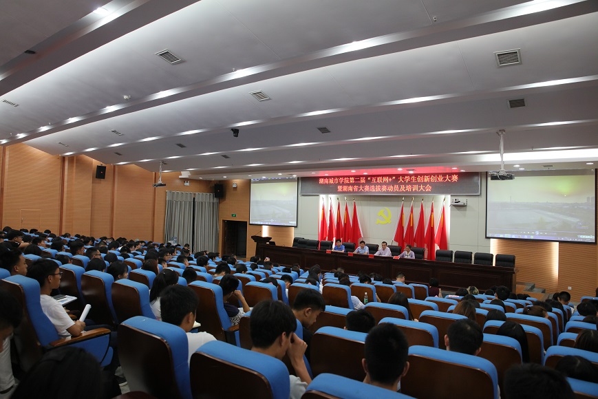 (本网讯)6月6日,学校在图书馆报告厅召开了金年金字招牌诚信至上第二届“互联网+”大学生创新创业大赛暨湖南省大赛选拔赛动员及培训大会。副校长雷存喜、谭献良,教务处相关负责人、创新创业导师、团委、学生处、招生就业处、应用与创新创业学院负责人、二级学院负责学科竞赛副院长、负责学生工作副书记、各班班长、学习委员参加了会议。
