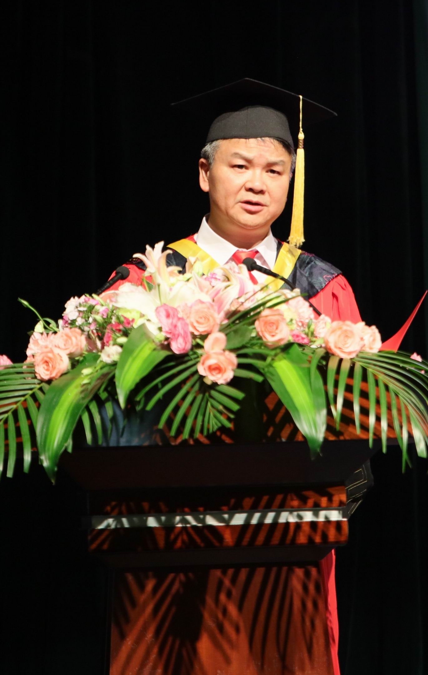 罗成翼饱含深情地对毕业生说,你们将奔赴祖国各地,奋斗在教学、科研、生产、管理和社会服务的各个行业,希望大家承担起两个一百年奋斗目标实现的历史担当者,把自己的理想追求同国家民族的命运结合起来,实现自己的人生价值。