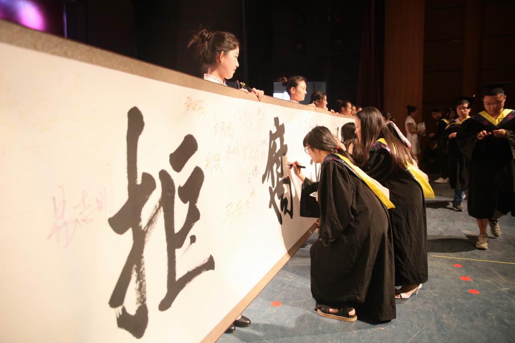 典礼上,还举行了“拒腐蚀、永不沾”拒腐防变签名活动,作为学校送给毕业生的“毕业礼物”。罗成翼说,今天是一个美好的时刻,在给你们送上祝福的同时,还希望你们做到“拒绝腐败、洁身自好”,以你们的才华、道德高尚和廉洁自律,践行对党、对祖国、对人民的忠诚。