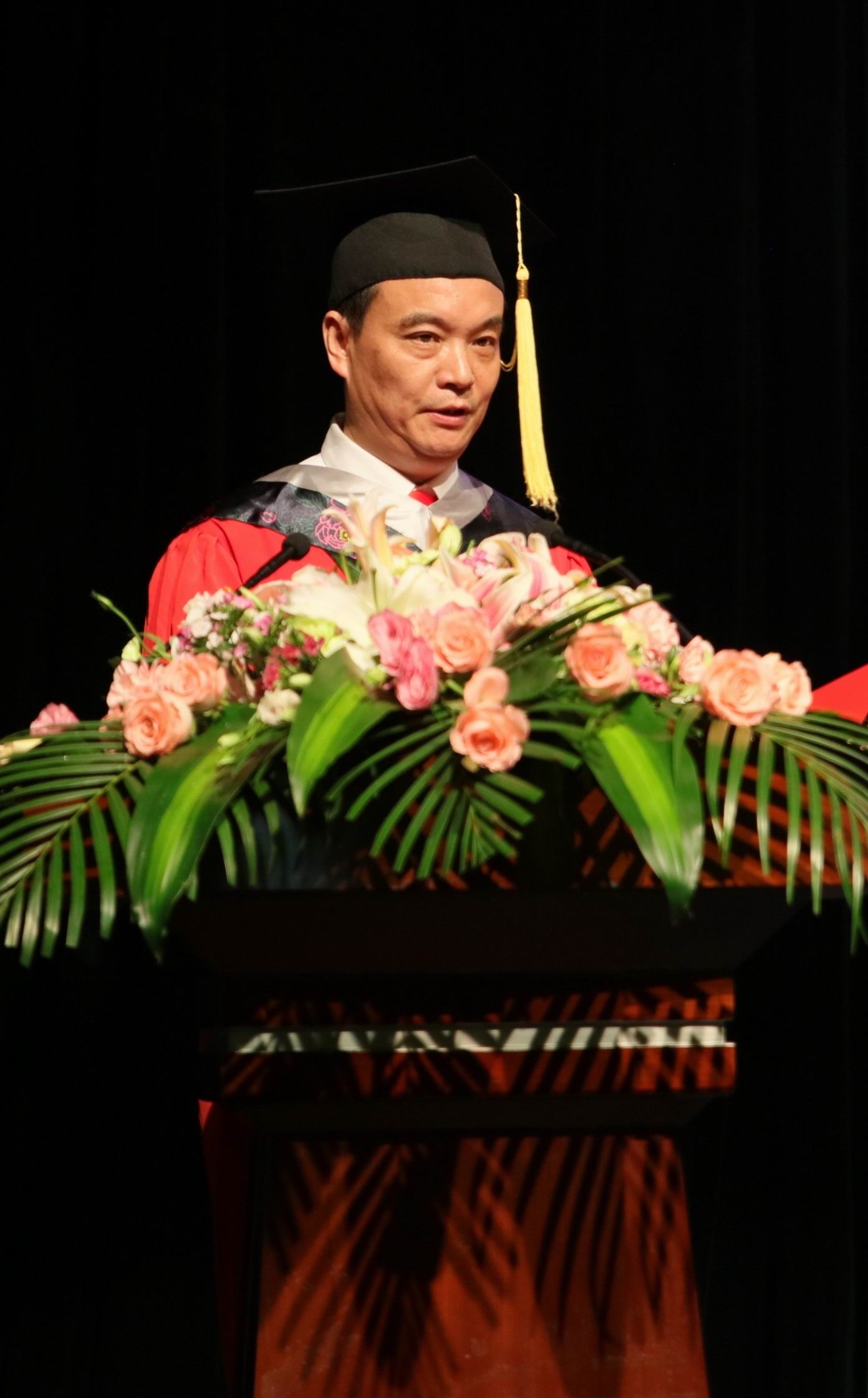 毕业生代表土木工程学院朱鑫瑞发言,感谢母校恩师们的谆谆教诲和亲切关怀,表示要做品学兼优并胸怀大志的人,做富有责任并敢挑重担的人,做与时俱进并开拓未来的人。