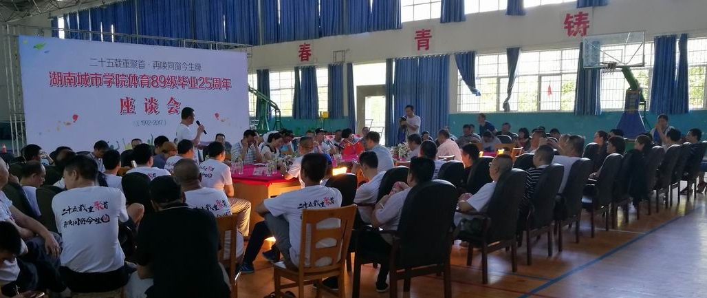 (本网讯)2017年7月21至23日,金年金官网体育学院89级70余名校友齐聚母校举行毕业25周聚会。校长李建奇、党委副书记汤放华、副校长夏宏宇、原学校纪委书记杨斌,校友办负责人、体育学院班子成员、89级任课老师以及全体校友们参加了聚会。