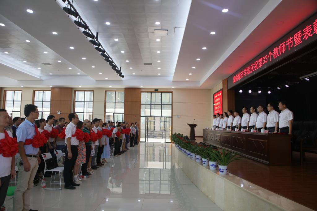 (本网讯)9月9日上午,在第33个教师节到来之际,学校在第二办公楼三楼学生活动中心隆重召开庆祝第33个教师节表彰大会。全体校领导、各职能部门负责人和二级学院全体教师近千人参加会议。党委书记罗成翼在会上发表讲话。会议由校长李建奇主持。