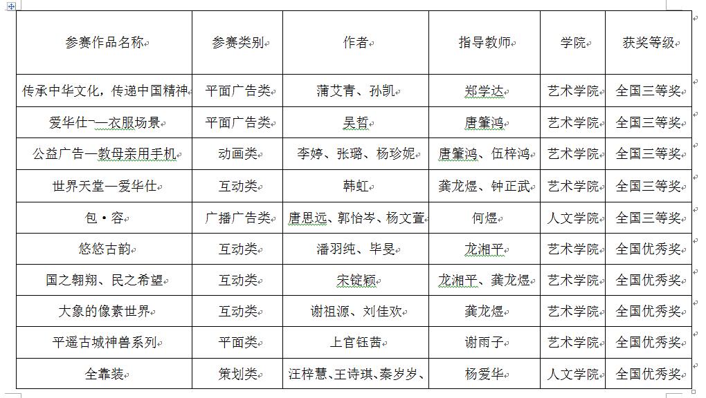近年来,艺术学院、人文学院一直坚持“以赛促学”、“以学促赛”的办学思路,将课堂教学与专业赛事结合,引导学生掌握专业知识之余,鼓励学生在教师指导下积极参与创作设计,参加专业赛事。