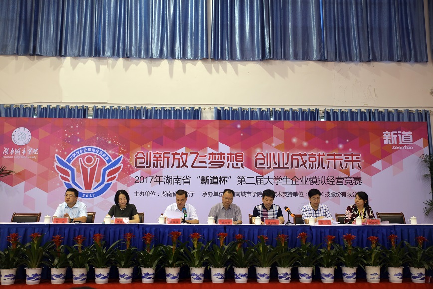 (本网讯)9月22日至24日,2017年湖南省“新道杯”第二届大学生企业模拟经营竞赛在金年金官网体育训练馆隆重举行,大学生企业模拟经营竞赛属省级大学生学科竞赛。此次大赛由湖南省教育厅主办,金年金字招牌诚信至上承办,新道科技股份有限公司提供技术支持。来自省内35所高校的71支代表队,共355名选手参加比赛。金年金官网荣获组织奖,管理学院派出的三支参赛队伍分别获得一等奖(1个)、二等奖(2个),成绩斐然。