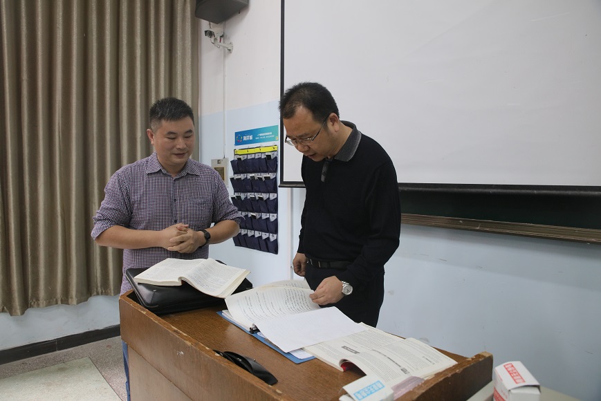 李建奇一行随机察看了第三教学12间教室的课堂情况,重点对课堂纪律、教师教案准备情况进行了检查,并对课堂一些不规范行为进行了现场整改。