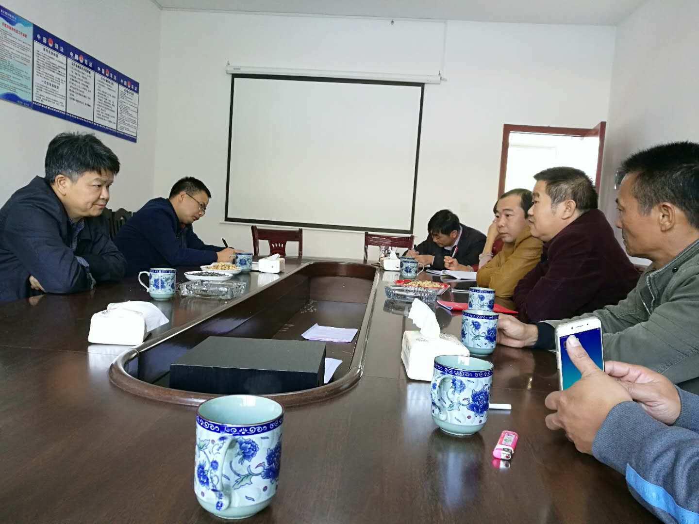 汤放华一行在陈王社区村村部会议室与扶贫队成员、乡镇驻村干部和村委会人员进行了座谈,查看了正在建设中的陈王自来水厂并深入贫困户家中开展了走访慰问工作。