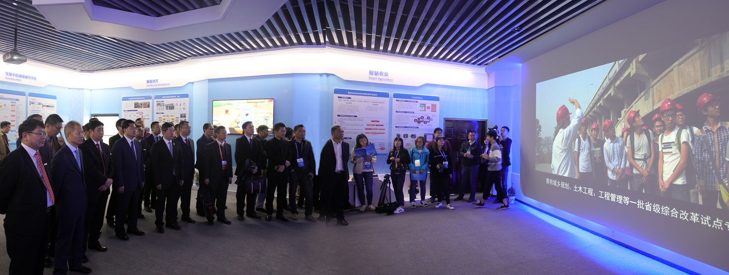 签约暨揭牌仪式前,与会领导嘉宾参观了华为公司对接益阳智慧城市建设成果和金年金字招牌诚信至上智能工程研究成果展,听取了党委书记罗成翼对学校“十三五”发展规划和改革发展情况介绍,观看了学校特色发展记录片。张峰、隋忠诚、徐直军对学校改革发展所取得的成绩和办学特色给予充分肯定,希望学校加强新型智慧城市研究,为地方经济社会的发展做出更大的贡献。